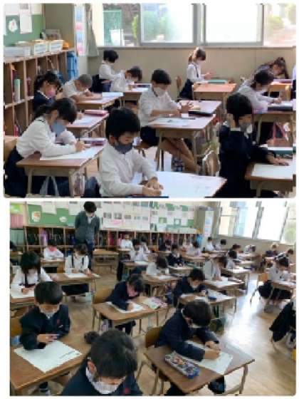 1年生の算数の授業の様子です。今日は、単元テストに取り組みました。みんな真剣な表情でがんばっています。