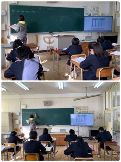 6年生の算数の授業の様子です。習熟度別に3つの教室に分かれて学習しています。今日から新しい単元「資料の調べ方 資料の特ちょうを調べよう」の学習に取り組みます。