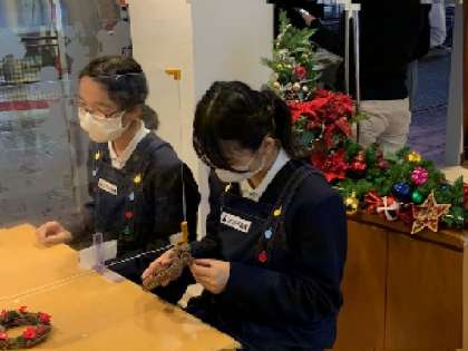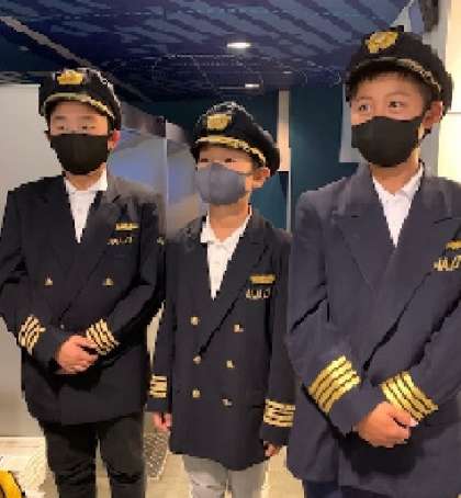 花屋さんでは、クリスマスリースを作らせていただきました。航空会社では、パイロットを体験させていただきました。画面を見て運転をします。他のグループでは、搭乗するCAの体験もさせてもらったようです。
