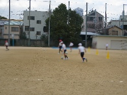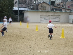 2月5日木曜日、体育の授業でサッカーをしている様子です。
