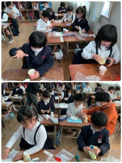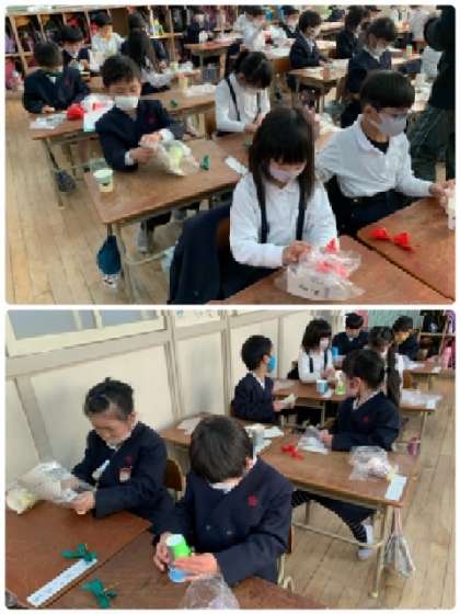 1年生〜「おいもパーティー」の後で・・・ 公開日 2020/12/23 更新日 2020/12/23 お知らせ 1年生は、早速、2年生からプレゼントしてもらった「おいもパズル」と「ぴょんうさぎ」を楽しみました。とってもうれしそうです。 いいね(0)
