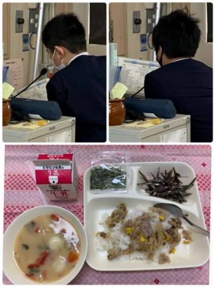 今日の給食は、「正月の行事献立」でした。正月には新しい年のはじまりを祝い「今年も健康に過ごせますように」と願って食べる料理がたくさんあります。今日の給食には、「ぞう煮」と「ごまめ」が出ています。