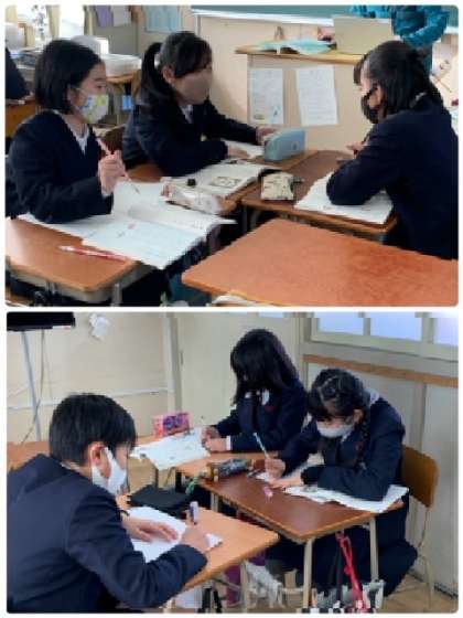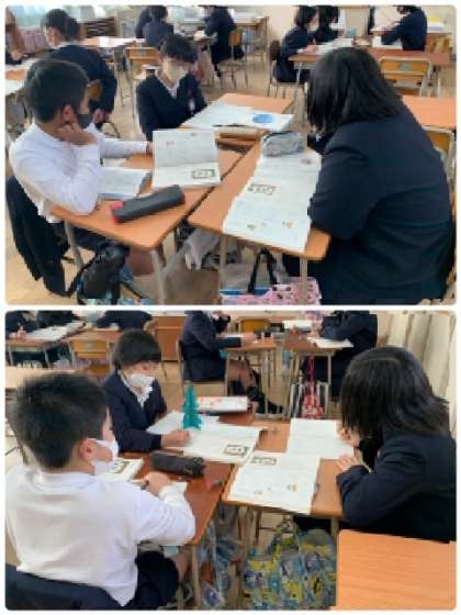 6年生 国語 公開日 2021/01/18 更新日 2021/01/18 お知らせ 6年1組の国語の授業の様子です。今日の学習のめあては、「くふうして表現しよう」です。班に分かれて、「〜のような人」という表現を考えました。各班の発表では、たくさんの表現が出てきていました。それぞれ個性が出ていますね。 いいね(0)