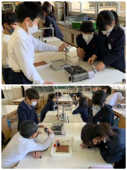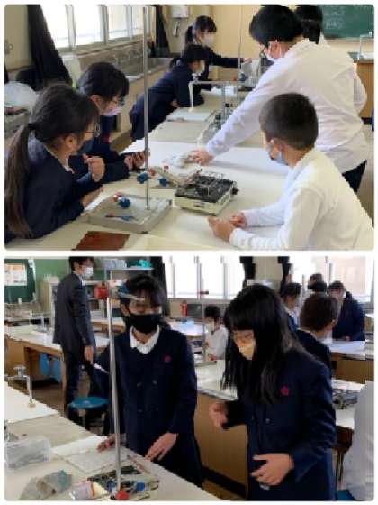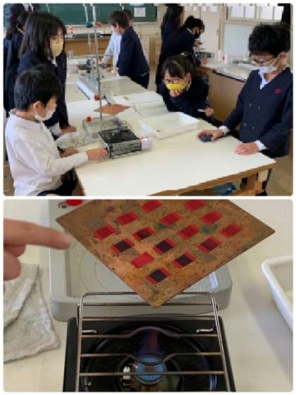 4年生の理科の授業の様子です。理科室で、金属のあたたまり方を調べる実験をしました。