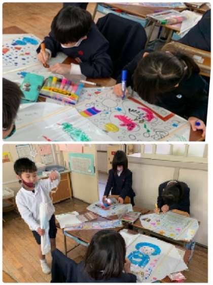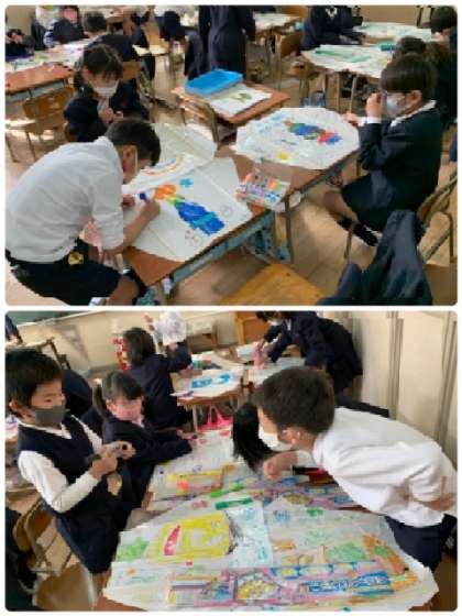 1年生の生活の時間の様子です。「凧づくり」をしています。