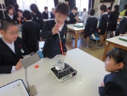 2月10日火曜日、4年生の理科の学習で「水はどのようにあたたまるのか」ということを調べる実験をしました。実験から、火があたっているところから、だんだん広がってあたためられていくことがわかりました。