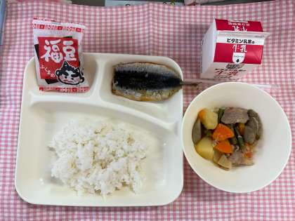 昨日の節分行事献立 公開日 2021/02/04 更新日 2021/02/04 お知らせ 昨日は節分の行事献立でした。「ごはん、いわしのしょうがじょうゆかけ、含め煮、いり大豆、牛乳」ちょうど節分に節分献立!・・・と思ったら今年の節分は2月2日・・・ それでももちろんみんなでおいしくいただきました。 ☆給食室の様子はこちらから→節分献立☆ いいね(0)