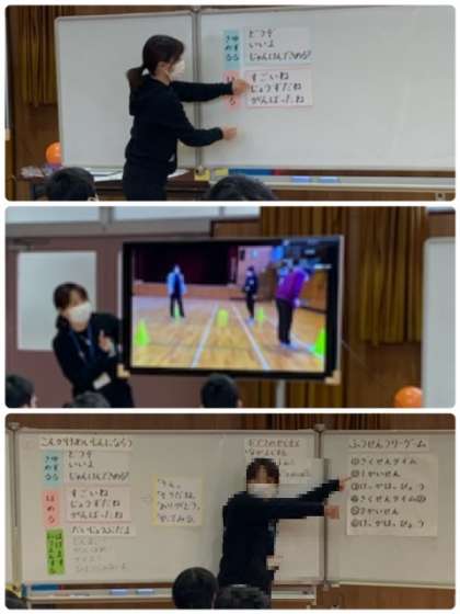 今日のポプラタイムのめあては、「こえかけめいじんになろう」です。これまでの活動で学習した「ゆずる・きめる」「ほめる」声かけに加えて、「はげます・おうえんする」言葉をみんなで出し合いました。それらの声かけを意識しながら、4つの班に分かれて「ふうせんラリーゲーム」をしました。ゲームの中では、思いやりのある声かけや行動ができていたことを、ほめてもらっていました。