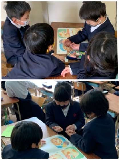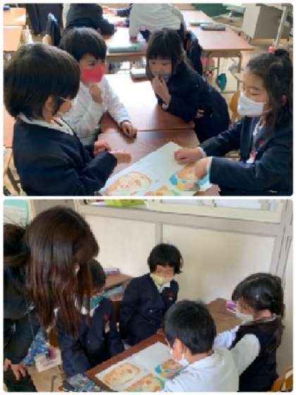 先生が読み物教材「ハムスターのあかちゃん」を読んでくれるのを、真剣な表情で聞いていました。ここから班に分かれて、「ハムスターのお母さんや赤ちゃんに、どんな言葉をかけたい」かを交流しました。