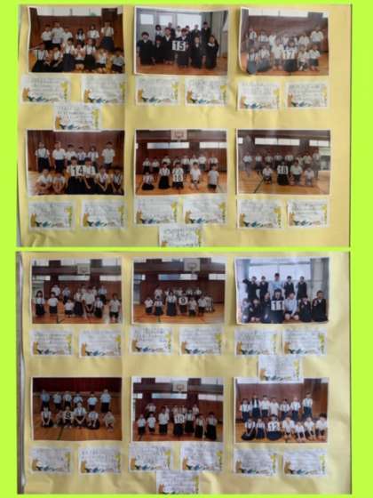 1階の掲示板に、縦割り班で撮影した写真とともに、6年生からのメッセージを掲示しています。1年生から5年生のみなさんは、ぜひ読んでください!