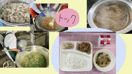今日の給食〜大好評〜 公開日 2021/03/01 更新日 2021/03/01 お知らせ 今日の給食は「ごはん、豚肉のコチジャンいため、トック、もやしのナムル、牛乳」です。コチジャンとは米やもち米を麹で糖化させ、唐辛子を加えて熟成させた発酵調味料で、甘みと辛味があります。豚肉とだいこんをいため、これで味つけしました。甘辛さでごはんがすすんだようです。トックはうるち米で作ったもちが入ったスープです。これにさっぱりもやしのナムルがついた献立で、みんなおいしく食べてくれました。 いいね(0)
