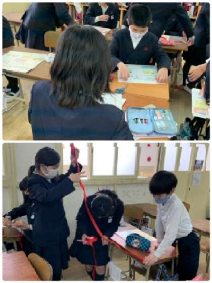 5年生 総合 公開日 2021/03/04 更新日 2021/03/04 お知らせ 5年生が、総合の時間を使って、卒業を迎える6年生へ贈る「メッセージカード」にリボンをつけてくれました。6年生とともに過ごす日は、あと10日です。 いいね(0)
