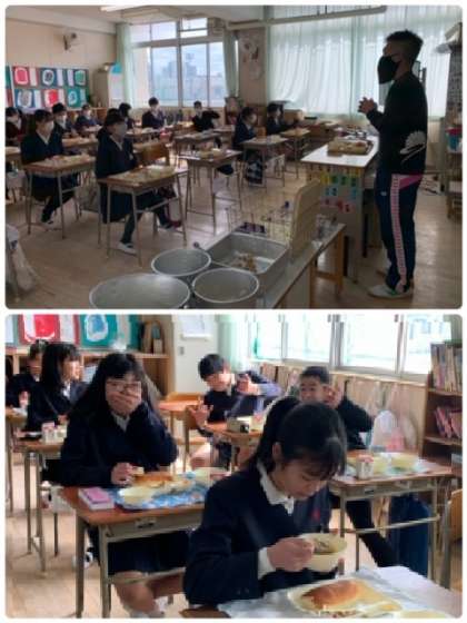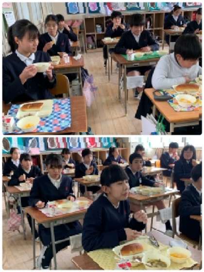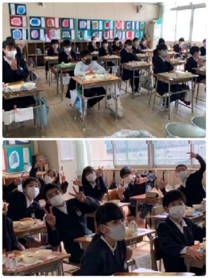 6年生 給食 公開日 2021/03/04 更新日 2021/03/04 お知らせ 6年2組の給食の時間の様子です。今日は、6年生のための「卒業お祝い献立」でした。6年生のみなさんは、作ってくれた給食調理員さんへの感謝の気持ちを心に、おいしく食べてくれたようです。 いいね(0)