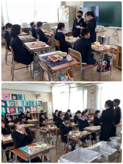 6年生 給食 公開日 2021/03/04 更新日 2021/03/04 お知らせ 6年1組の給食の時間の様子です。「卒業のお祝い献立」について担任の先生と楽しい会話もしていました。おいしくいただきました! いいね(0)