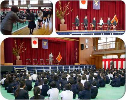 校長先生、生活指導の先生のお話を聞いた後、各学級の代表児童の作文発表を行いました。どの児童も、この1年間がんばってきたことや、次の学年への抱負などしっかりと発表することができ、みんなから大きな拍手をもらっていました。