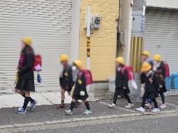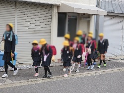 2月25日水曜日、集団登校の様子です。寒さのためポケットに手を入れて歩いている児童や遅れて登校する児童が数名いました。学校からは「寒いなら手袋をはめる」「明日は遅れずに、集団登校をする」と声をかけていますが、お家でもご指導をお願いします。