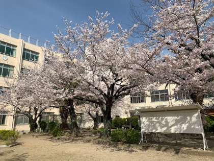 九条北小学校の中庭の桜が満開になりました。なごやかな春の訪れを実感させてくれます。いつも、九条北小学校のホームページをご覧いただき、ありがとうございます。