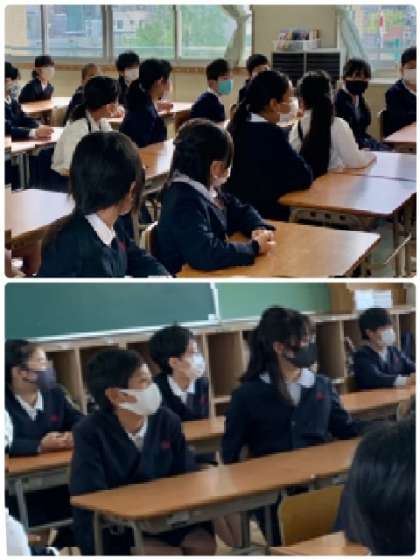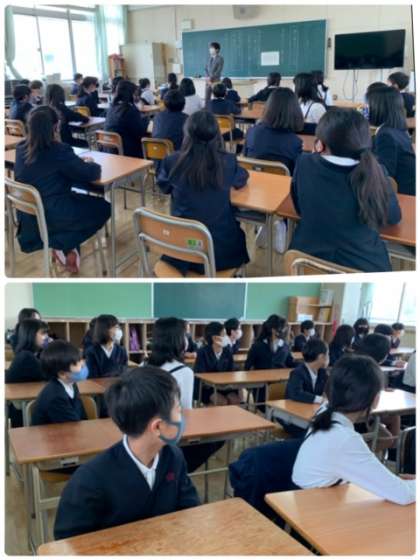 6年生の学級活動の様子です。新しい担任の先生から話を聞いています。