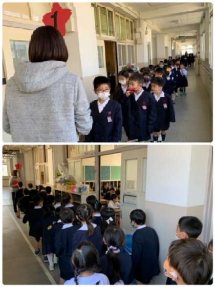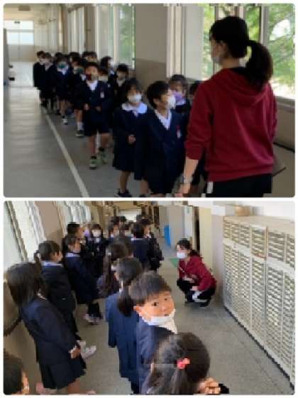 1年生は「学校探検」をしました。担任の先生に、いろいろな教室を案内してもらいました。