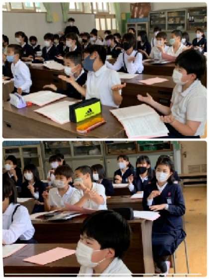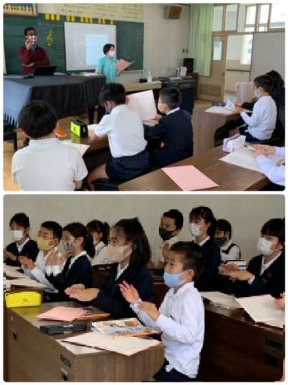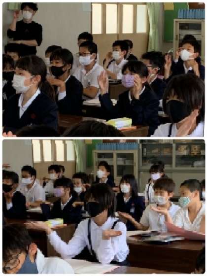 続いて、英語の歌「Skidamarink Hello Song」を教えてもらいました。英語の手話をしながら歌います。英語の手話が気にったようで、楽しそうに取り組んでいました。