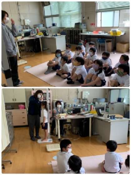 1年生〜はじめての発育測定 公開日 2021/04/19 更新日 2021/04/19 お知らせ 1年生は、小学生になってはじめての発育測定を実施しました。1クラスが2回に分かれて保健室へ移動しました。最初に、保健室の先生から「自己紹介」と、「保健指導」として、いろいろなお話をしてもらいました。 お話の後、順番に発育測定をしていきました。 いいね(0)