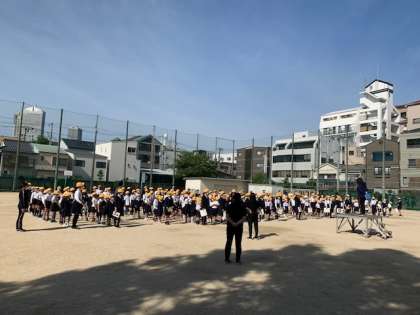 児童集会 公開日 2021/04/23 更新日 2021/04/23 お知らせ 4月23日(金)、今年度初めての「児童集会」を実施しました。初めてたてわり班で並んでいます。通常であるなら講堂で行うところを、感染症対策のため運動場で実施しました。 今日は1回目の集会ということで、各委員会の委員長にあいさつと決意表明をしてもらいました。続いて代表委員のメンバーも自己紹介とあいさつをしてくれました。しっかりとした発表と態度に、意気込みを感じました。これから、よろしくお願いします!! いいね(0)