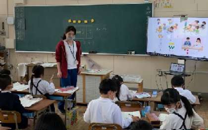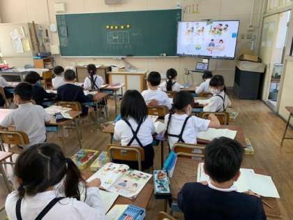 1年2組の教室の様子です。ブロックも活用しながら学習を進めています。