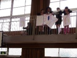 3月3日火曜日、5年生の児童が、明日行われる「卒業をお祝いする会」の会場設営を協力して行っていました。