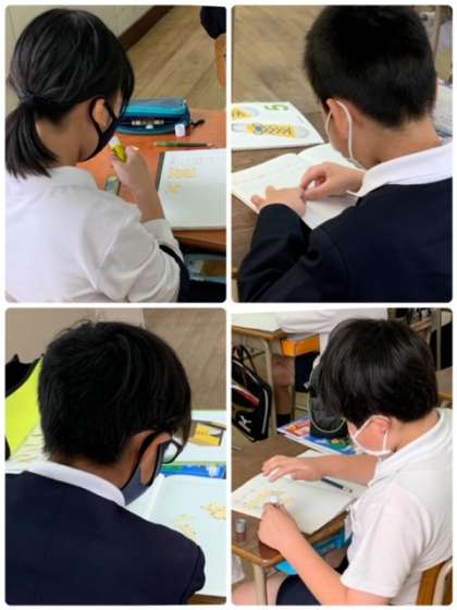 5年生 公開日 2021/04/28 更新日 2021/04/28 お知らせ 5年2組の教室の様子です。算数の「合同な三角形のしきつめ」の学習をしています。切り取った合同な三角形をしきつめて、いろいろな図形を作りました。 いいね(0)