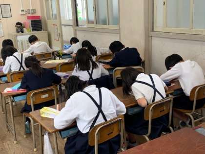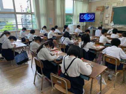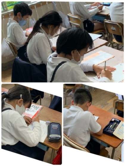 3年1組の教室の様子です。漢字ドリルの「かくにんテスト」に取り組んでいます。よく書けているようです。