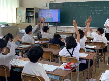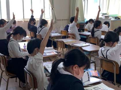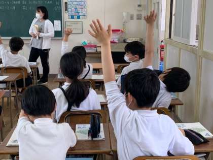 先生から「この問題の式と答えがわかった人?」と聞かれて、たくさんの児童が自信をもって手をあげていました。