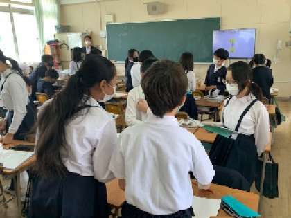 各自の考えを班で交流しました。交流することで、考えを深めることができているようです。