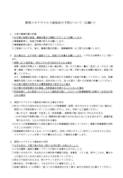 ※感染症予防について、下記のお手紙(明日配付)もご覧ください。