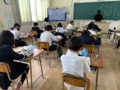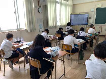 5年2組の教室の様子です。国語の単元「動物たちが教えてくれる海の中のくらし」の学習をしています。