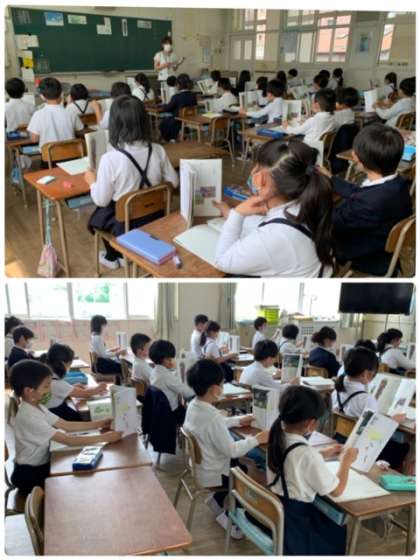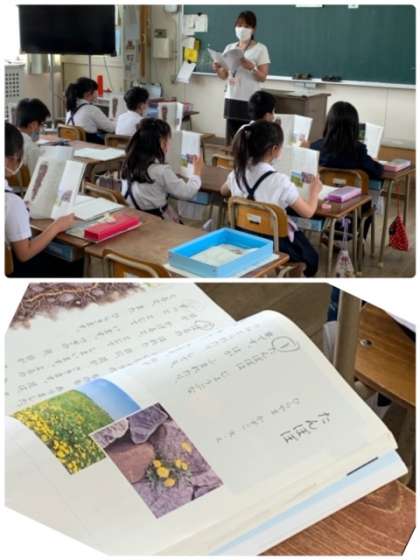 2年1組の教室の様子です。国語の教科書の本文「たんぽぽ」の音読をしています。