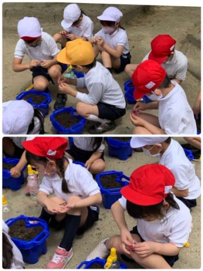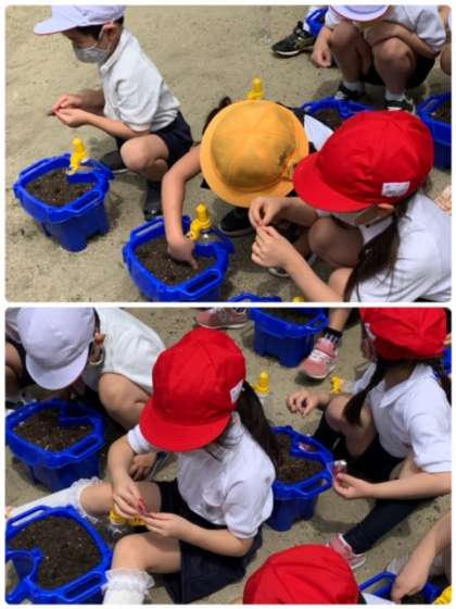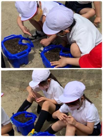 そっと種を植えていきました。「元気に育ってね!」の願いを込めて!