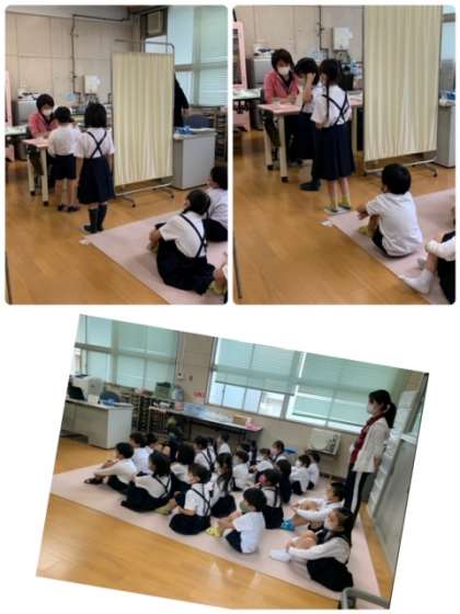 5月12日(水)、1年生の聴力検査を実施しました。まずは、先生から聴力検査の受け方について説明してもらいました。保健室で、一人ずつ順番に検査をしています。順番を待つ間も、静かに先生の指示を聞いていました。