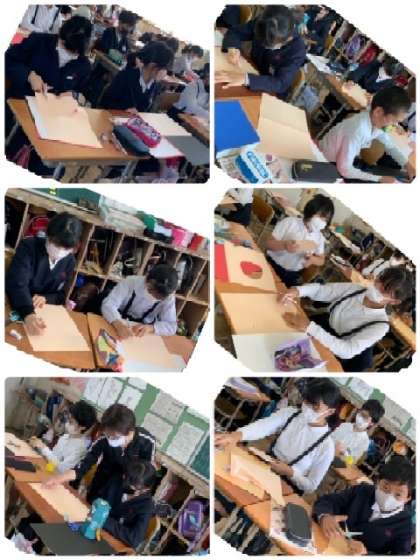 6年生 公開日 2021/05/13 更新日 2021/05/13 お知らせ 6年1組の図工の時間の様子です。今日から新しい作品作りをします。色画用紙を使って、「自画像」を作成します。描くのではなく、色画用紙を貼り合わせて作品を作ります。まずは、輪郭をどうしようか悩みながら、作品作りが始まりました。 いいね(0)