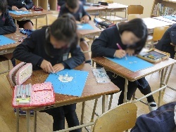 3月9日月曜日、4年生が先週から、版画の学習で彫刻刀を使い始めました。初めて使うので、彫刻刀の使い方や特長をしっかり学びながら学習しています。とても熱心に取り組んでいます。