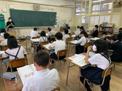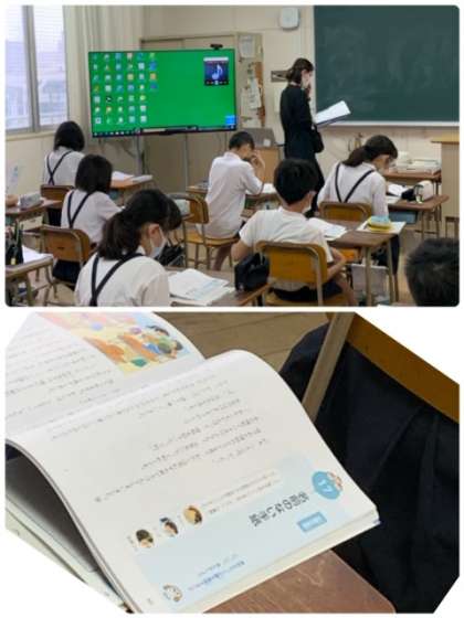 5年2組の道徳の時間の様子です。読み物教材「名前のない手紙」を活用して学習を進めています。まずは、朗読を聞きながら、各自が黙読しています。