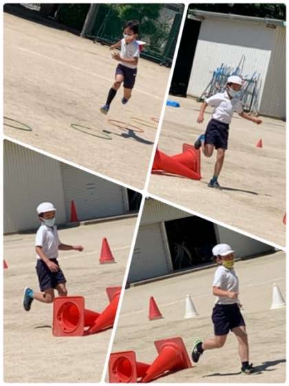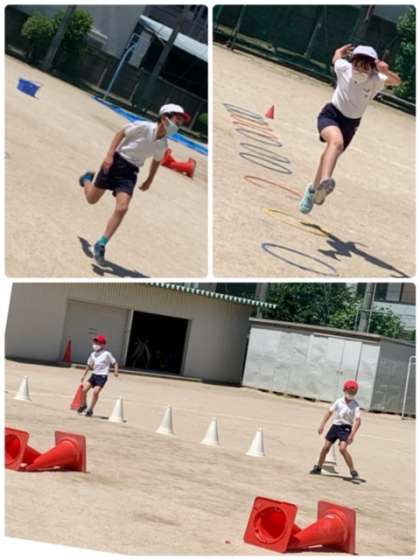 3年生の体育の授業の様子です。サーキットトレーニングを取り入れ、体力づくりをしています。