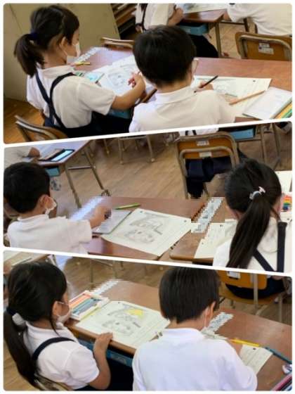 1年生 国語 公開日 2021/06/01 更新日 2021/06/01 お知らせ 1年2組の国語の時間の様子です。「こん こん こん」の挿絵に色鉛筆を使って色付けをしています。選んでいる色から、それぞれが感じたイメージが感じられます。 いいね(0)