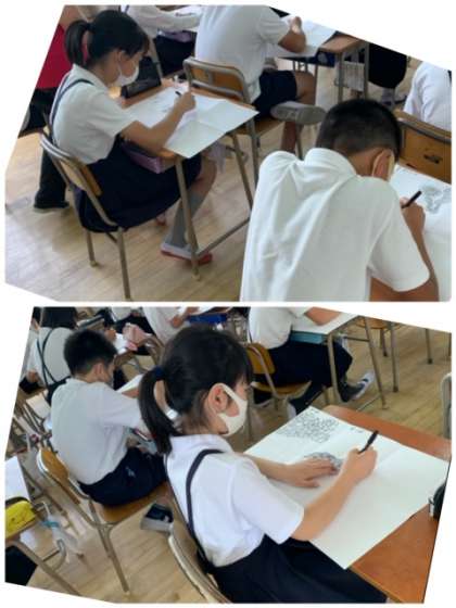 5年生 図工 公開日 2021/06/03 更新日 2021/06/03 お知らせ 5年1組の図工の時間の様子です。今日のめあては、「お気に入りのもようをつくろう」です。決まったルールで書き込んでいった「しきつめ」「波・うず」「たけのこ」という種類の模様を作っています。集中して模様を書き込んでいます。 いいね(0)