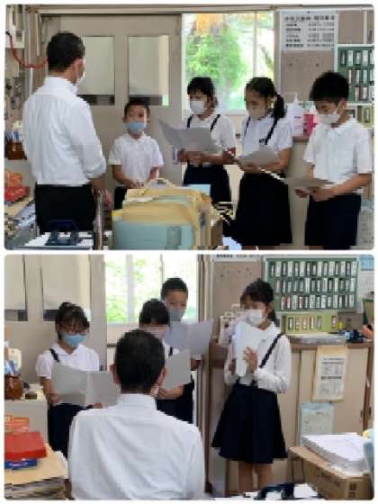 5年生は、国語の学習で単元「知りたいことを聞き出そう」の学習をしています。まず、聞きたいことを整理し、それをもとにインタビューをします。インタビューしたことをもとに、最後に自分の考えをまとめていきます。先日、5年2組は、校長先生にインタビューしました。今日は、5年1組の児童が、教頭先生にインタビューを実施しました。