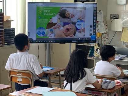 5年1組の理科の授業の様子です。単元「ヒトのたんじょう」の学習をしていました。