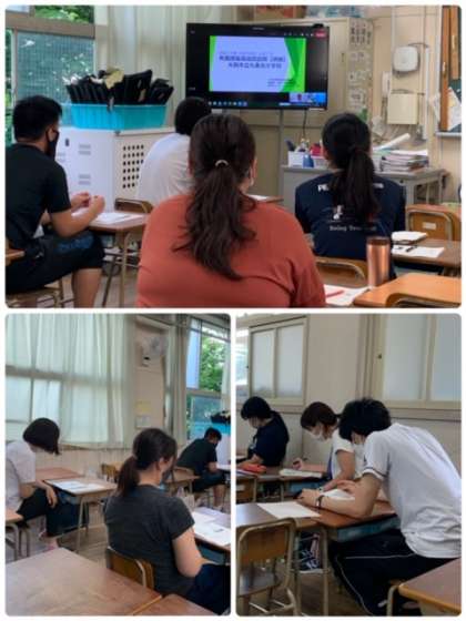 6月7日(月)、先生方対象の外国語研修会を実施しました。講師の先生には、Teamsを活用して行っていただきました。小学校段階で学習する「外国語活動」「外国語科」について、研修を深めました。低学年・中学年・高学年それぞれで身につけたいことなども共有しました。これからの授業に、研修の内容を活かしていきたいと考えています。