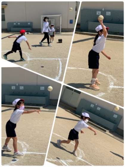 今日は、1・2年生が「体力テスト」を実施しました。1年1組は、最初に「ソフトボール投げ」から始めました。