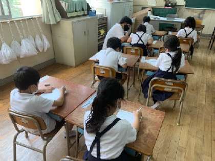 1年2組の「いきものがかり」より学級のみんなへ、「きんぎょの名前」大募集!!ということで、今日の学級活動の時間は、「いきものがかり」さんが作成してくれたアンケート用紙に、学級で育てている「金魚の名前」を考えて記入していました。