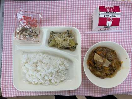 今日の給食〜つるつるはるさめ〜 公開日 2021/06/15 更新日 2021/06/15 お知らせ 今日の給食は、「ごはん、マーボーはるさめ、チンゲンサイともやしの甘酢あえ、アーモンドフィッシュ、牛乳」でした。はるさめは、たっぷりのお湯で少しかためにゆで、水にさらします。ゆであがったはるさめは、きらきらきれいです。具だくさんのマーボーはるさめに仕上がり、子どもたちに大好評でした。 いいね(0)