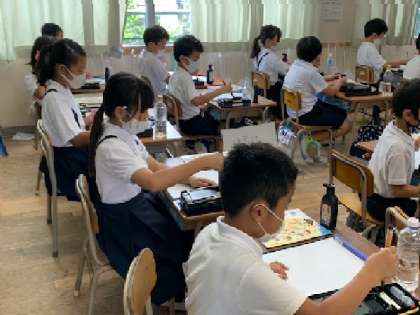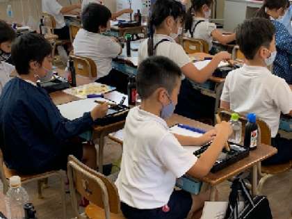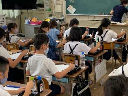 3年生の書写の学習に2回目です。習字をするのが楽しみなようで、各自すみやかに準備をして授業が始まりました。